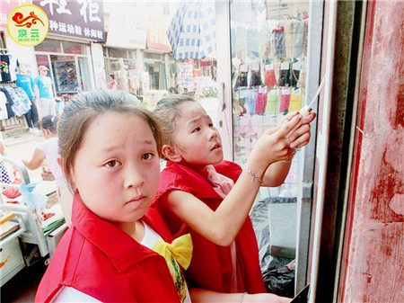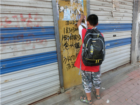 垃圾广告太多了,就像衣服上一层又一层的白色补丁片,真是惨不忍睹!孩子们又围拢上去,用他们勤劳干净的手把垃圾广告先一层又一层撕掉,再用小铲子刮。众志成城!孩子们流着热火朝天的汗水,他们告诉人们的不仅是不怕苦、不怕累、能吃苦的精神,更有建设文明卫生新家园的志向和信心!